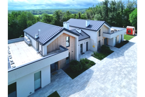Когда на кровле присутствуют ендовы и требуется возможность выбора направления монтажа картин на скатах рекомендуем выбирать Кликфальц® Double Pro